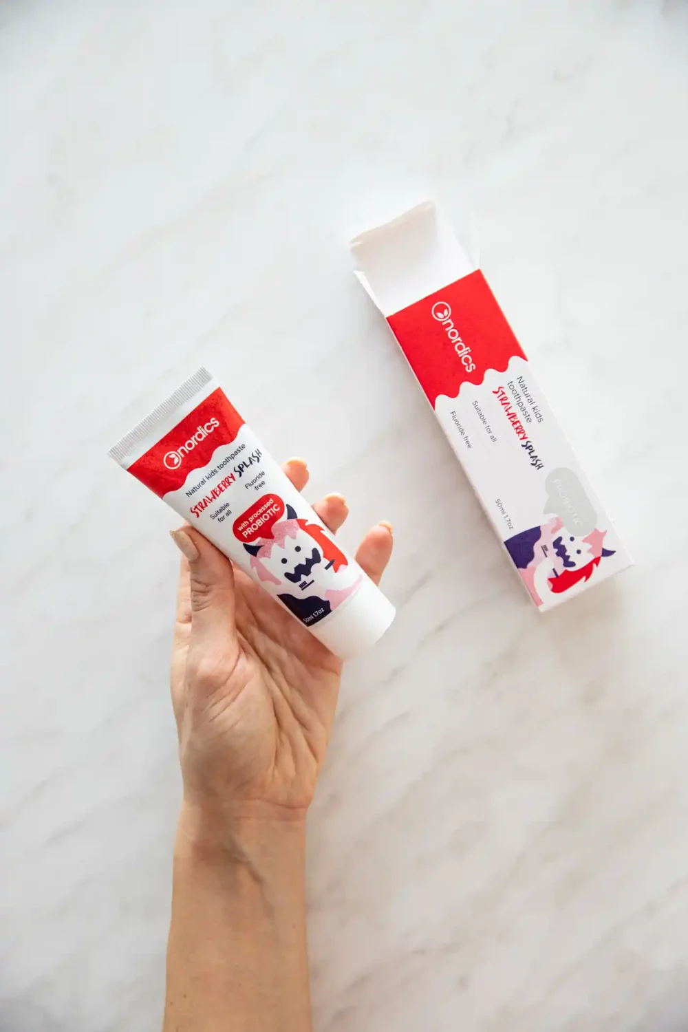 1 отзив за Детска паста за зъби ягода с пробиотик – Nordics